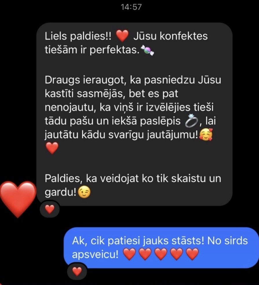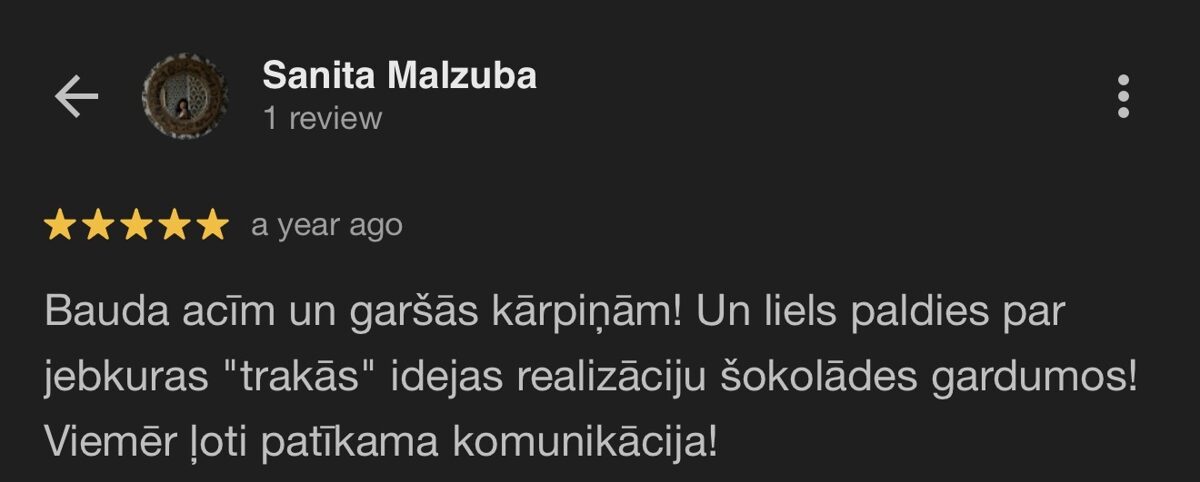 Man ir svarīgs katrs jūsu novērtējums un atsauksme. Paldies ka dalaties.